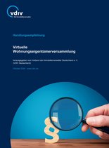 Die Handlungsempfehlung erläutert den Gesetzestext und die sich daraus ergebende Beschlussfassung. Sie enthält zudem entsprechende Musterbeschlüsse, um die virtuelle Versammlung nach § 23 Abs.1a WEG als Versammlungsform festzulegen. (Stand Oktober 2024, PDF Datei zum Download: 7,2 MB)